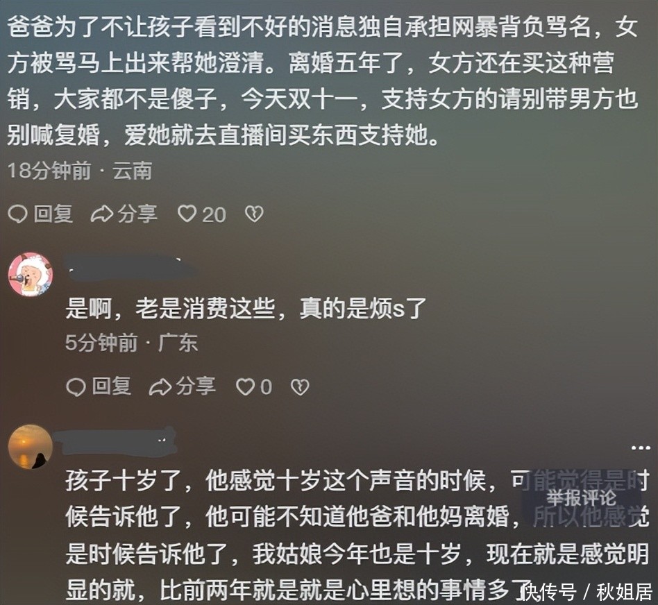 不过这一举动在网络上引发了热议。不少网友提出质疑孩子都十岁了平日不上网吗跟同学之间没有交流吗你们离婚已经五年之久她真的会一直毫不知情这种“迟来的告知”显得有些不合常理甚至让人怀疑是否带有表演性质。